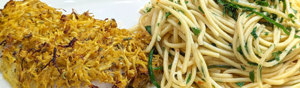 • Crispy Fennel-Topped Fish with Garlic and Oil Spaghetti | Rachael Ray